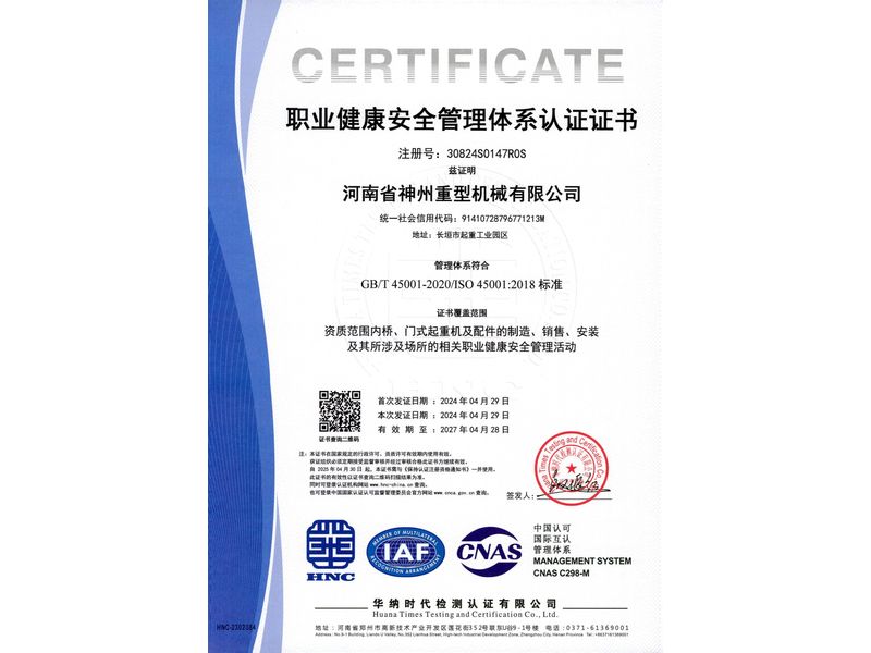 職業(yè)健康安全管理體系認(rèn)證證書
